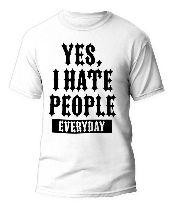 Unser Klassiker ist zurück! Das "YES, I HATE PEOPLE" Shirt aus 100% Baumwolle verbindet hohen Tragekomfort mit einem klaren Statement. Dieses beliebte T-Shirt ist in den klassischen Farben Schwarz und Weiß erhältlich und bietet eine perfekte Kombination aus Stil und Aussagekraft. Der hochwertige Druck sorgt für langlebige Farben und einen coolen Look, der bei jedem Anlass auffällt. Erhältlich in den Größen XS, S, M, L, XL und XXL, passt es sich jeder Statur optimal an. Ob für den Alltag oder als Geschenk – dieses Shirt ist ein Muss für alle, die ihre Meinung gerne direkt zeigen.